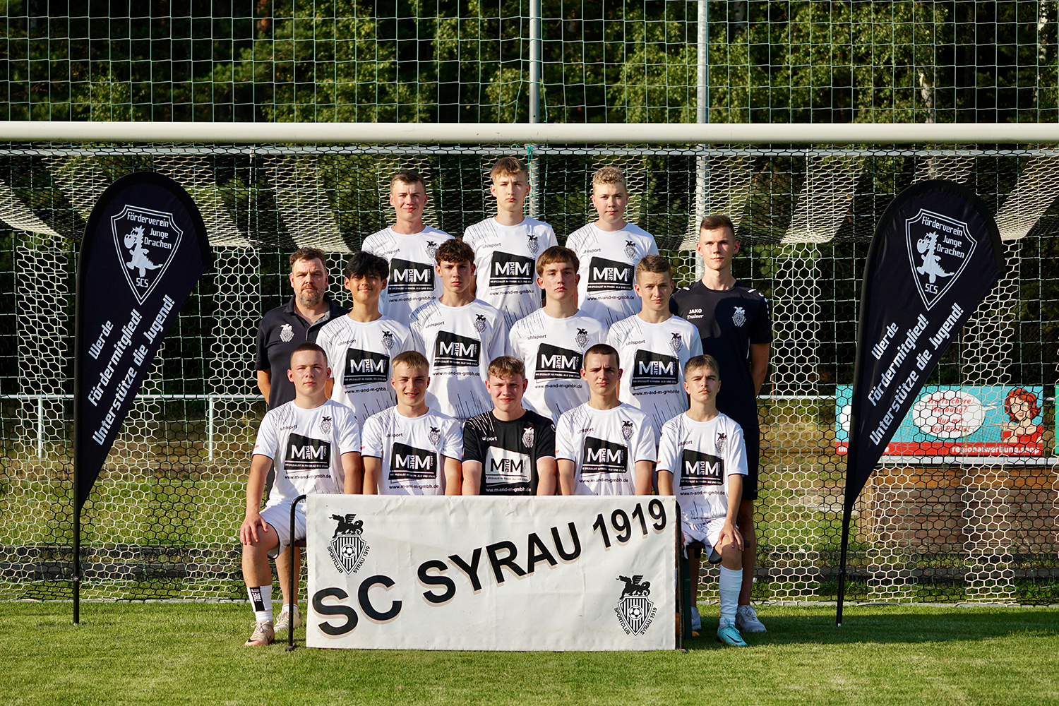 Mitte von links: Trainer Mario Kasimir, Elijah Bobila, Lenny Gäbel, Jannis Quendt, Franz Fröhlich, Co-Trainer Maximilian Popp